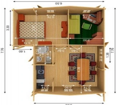 External dimensions (width x depth): 650cm x 776cm (21’3″ x 25’5″)