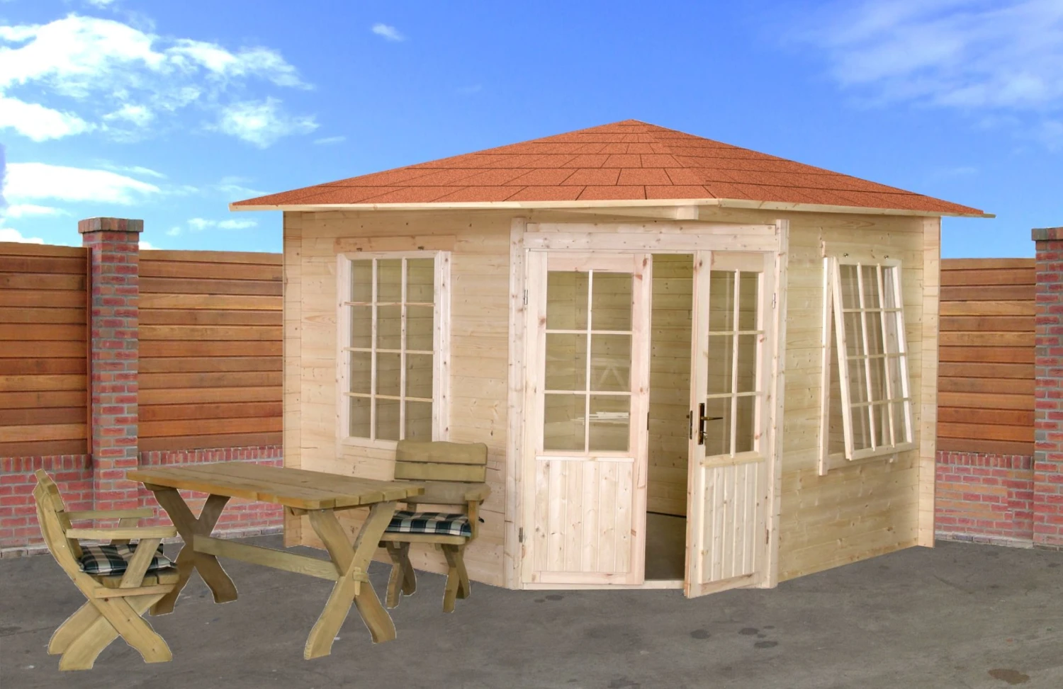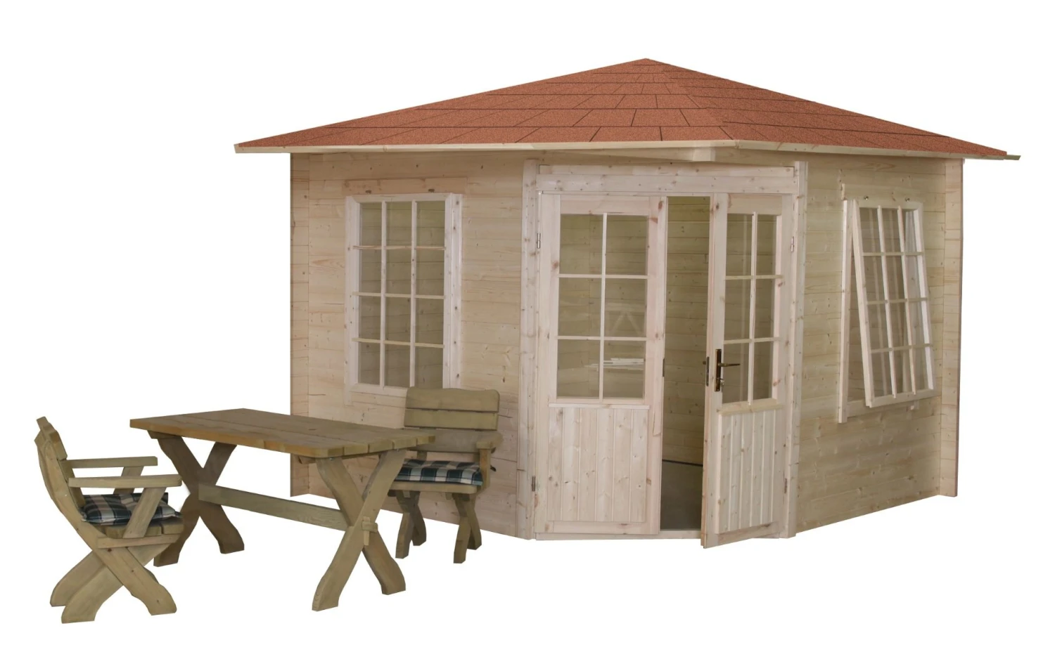 Mansfield 3x3m 28mm d’Ă©paisseur de paroi, y compris les portes, la fenĂŞtre et le verre vĂ©ritable, fabriquĂ© en Ă©picĂ©a scandinave de haute qualitĂ©, certifiĂ© FSC, garantie du fabricant de 10 ans. Abri de jardin cabane en rondins Mansfield 300x300cm avec portes, fenĂŞtre et verre vĂ©ritable, fabriquĂ© en Ă©picĂ©a scandinave de haute qualitĂ© issu d’une gestion forestière responsable, Ă©paisseur de paroi 28mm certifiĂ© FSC, garantie du fabricant de 10 ans. La cuisson d’Europe du Nord en raison d’une croissance plus lente est plus durable et plus solide en raison de la structure plus dense du bois et contient beaucoup moins de nĹ“uds et de rĂ©sine que l’Ă©picĂ©a moins cher d’Europe de l’Est. Cela signifie Ă©galement que le bois pourrit, se pollue ou s’humidifie beaucoup moins rapidement. C’est pourquoi nos abris de jardin et cabanes en rondins sont garantis 10 ans. L’abri de jardin Mansfield comprend tous les matĂ©riaux de montage, les charnières et les serrures et le verre vĂ©ritable. Portes FenĂŞtres Les fenĂŞtres sont produites au moyen de technologie de bout Ă bout qui repousse l’humiditĂ©. Les charnières et les serrures sont en fer de haute qualitĂ© et non en plastique comme beaucoup de nos concurrents. Enfin, tous nos abris de jardin et cabanes en rondins sont conformes aux normes ISO.