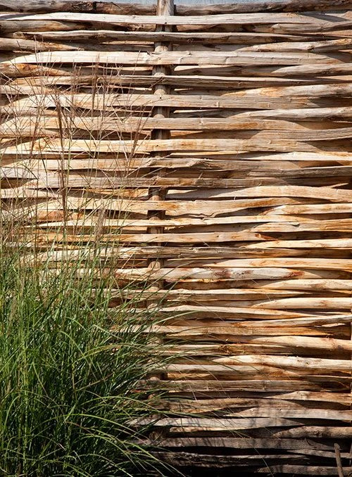 Clôture châtaigne très robuste, fendue et tressée artisanalement.