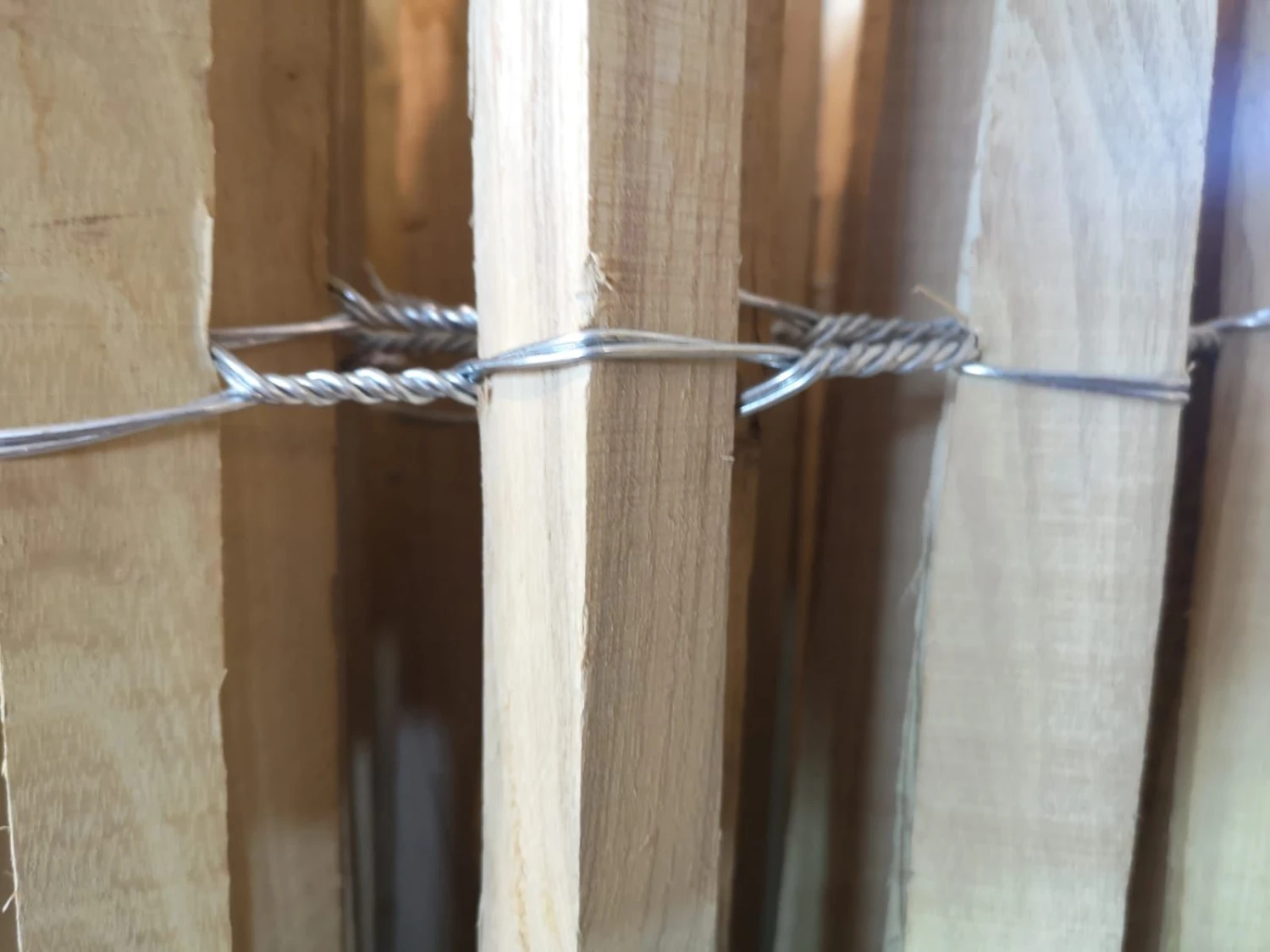 Ganivelle cloture chataigne 100cm hauteur et 10 mtr longueur, avec 3 fils d’acier et un espacement des lattes de 8/9cm. En bois d’acacia/Robinier, connu pour sa dureté naturelle, comparable au chêne ou au teck et est le bois européen le plus durable.