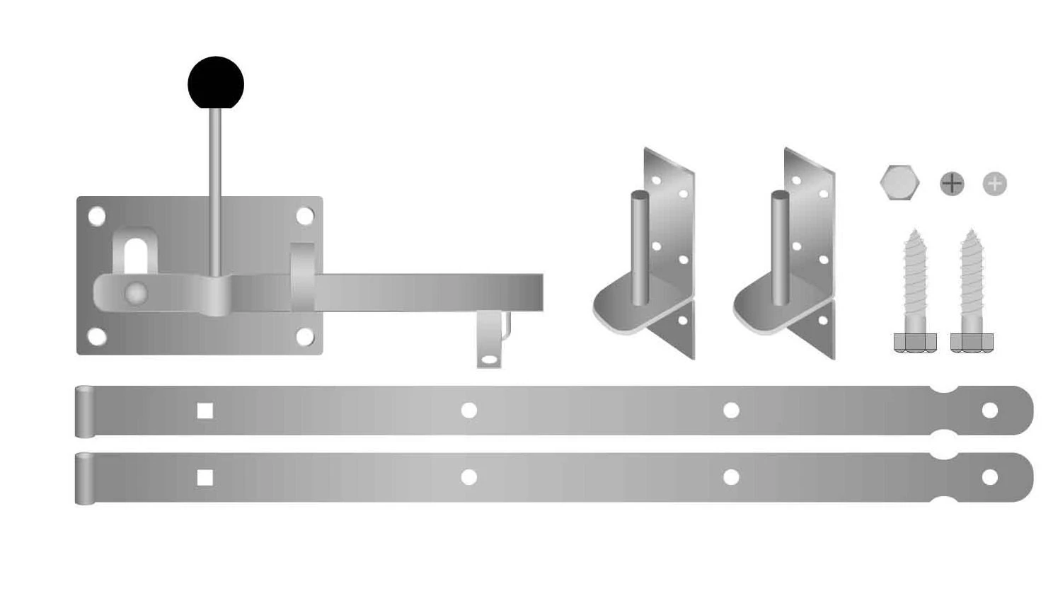 Portillon en kit pour cloture en bois, loquet de porte pour portillon, Pentures 500mm, Gonds